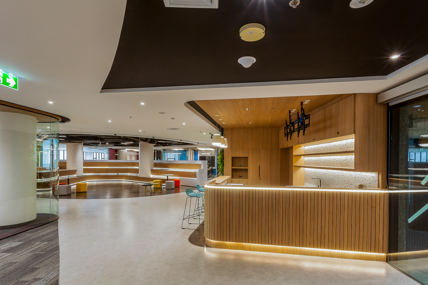 The work we collaborate on with the designer involves installing wooden laminate-patterned ceilings, which requires highly skilled craftsmanship. This particular installation demands extensive experience and expertise, as it involves using machinery for tasks like wall and railing installations. Additionally, we handle projects like Exhibition Rooms that require intricate detailing and precision, especially when creating stands in Townhall areas. Moreover, we have successfully managed projects involving curved walls, which our team skillfully handles at the factory and then beautifully installs at the site. This decoration work emphasizes the need for expertise and attention to detail, resulting in stunning and well-executed designs.